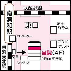 - JR 京浜東北線・JR 武蔵野線 南浦和駅下車徒歩1分 (東口ロータリー内)